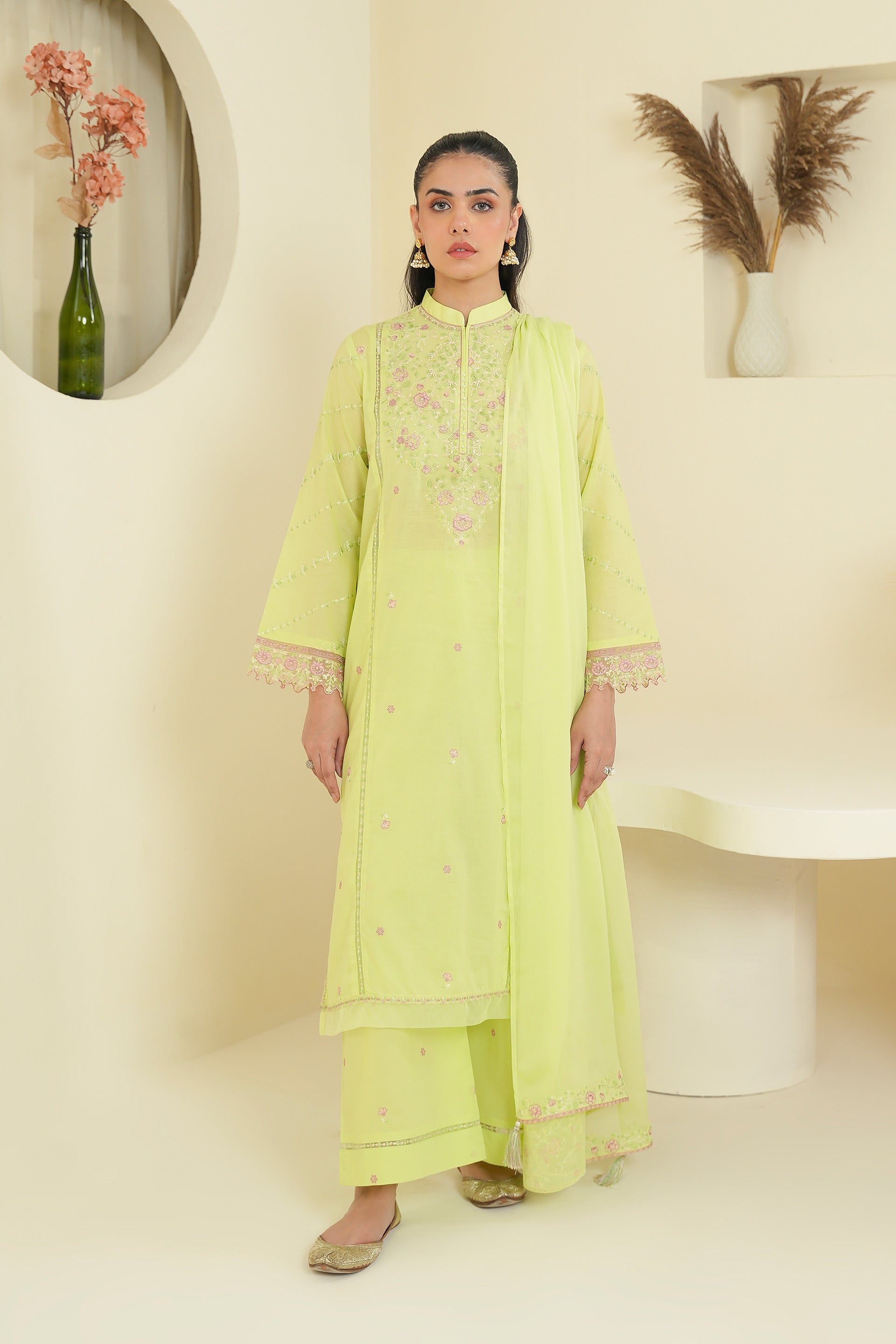 Experience elegance with the Suit in Lime Green, crafted from premium Lawn. This 3 Piece Suit is perfectly designed for any occasion.