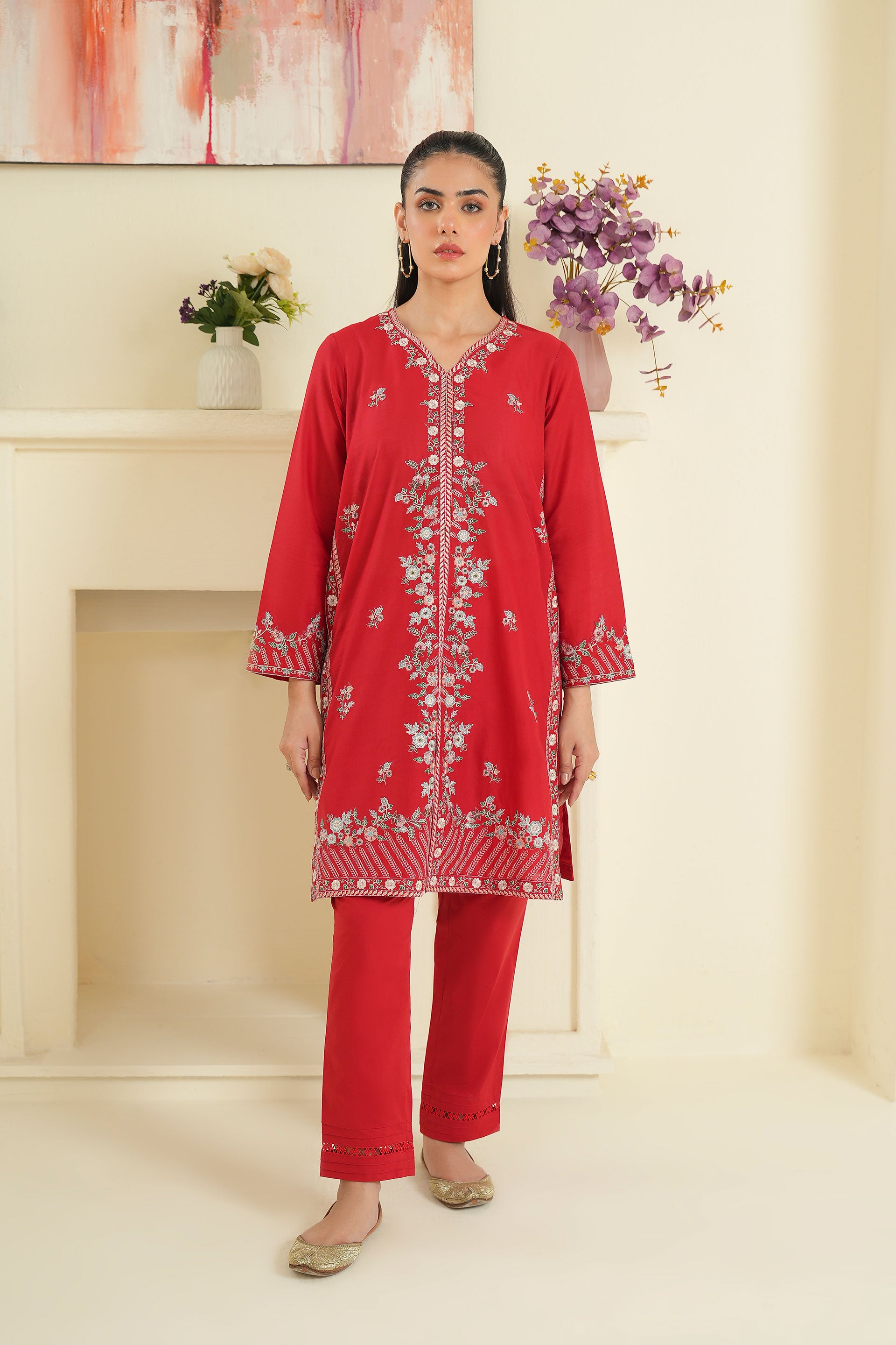 Experience elegance with the Suit in Red, crafted from premium Lawn. This 2 Piece is perfectly designed for any occasion.