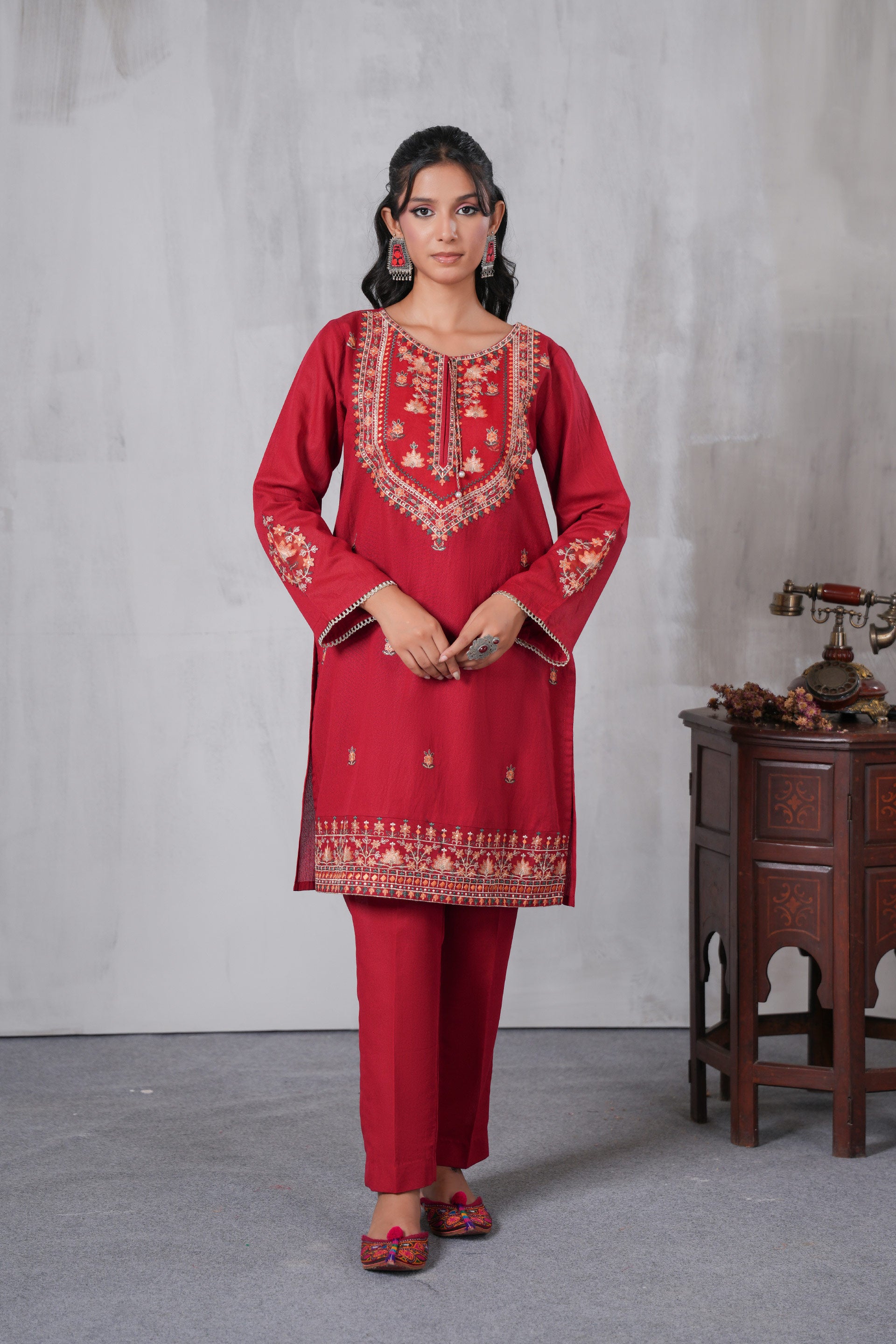 Experience elegance with the Suit in Red, crafted from premium Lawn Karandi. This 2 Piece is perfectly designed for any occasion.