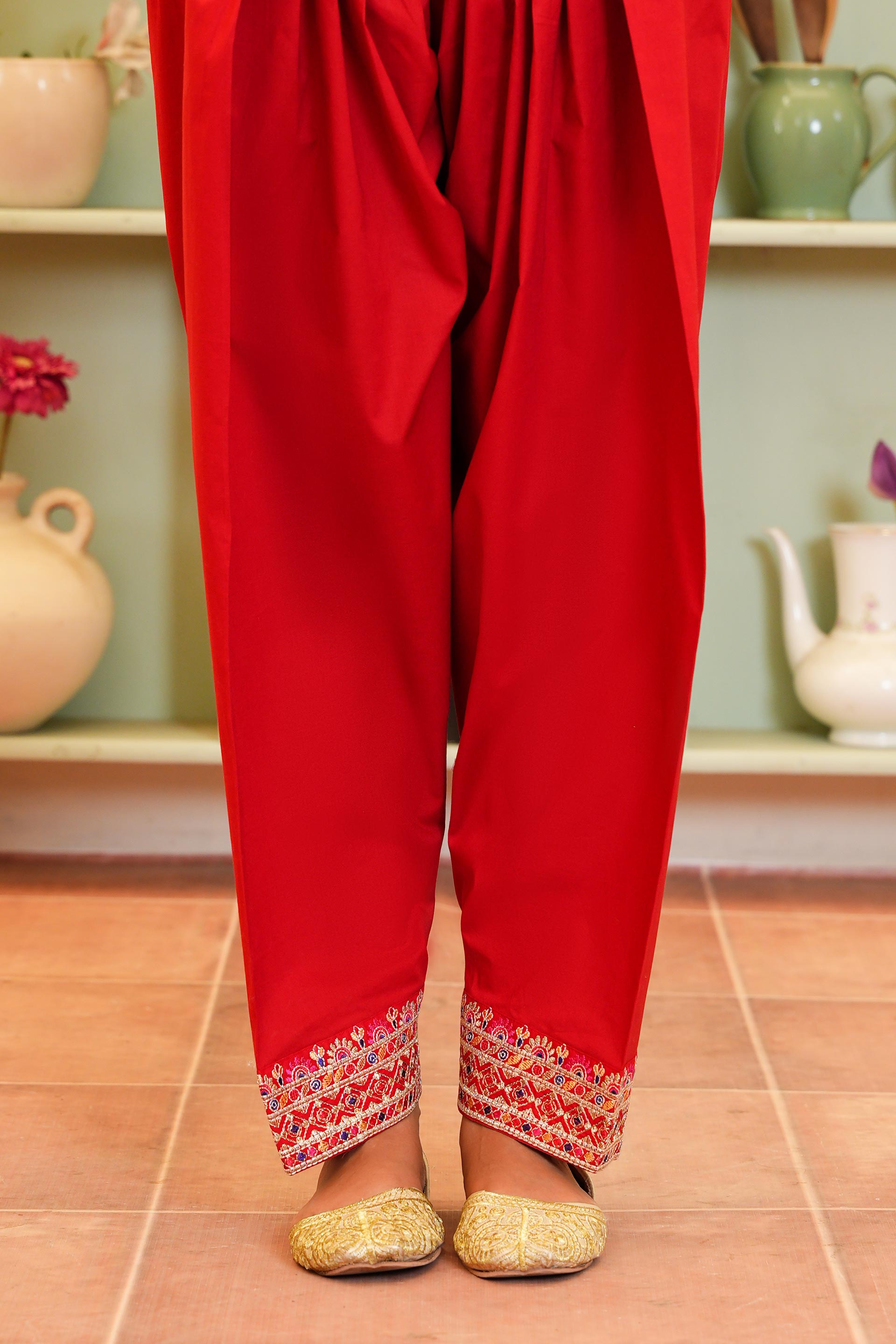 Experience elegance with the Shalwar in Red, crafted from premium Cambric. This 1 Piece is perfectly designed for any occasion.