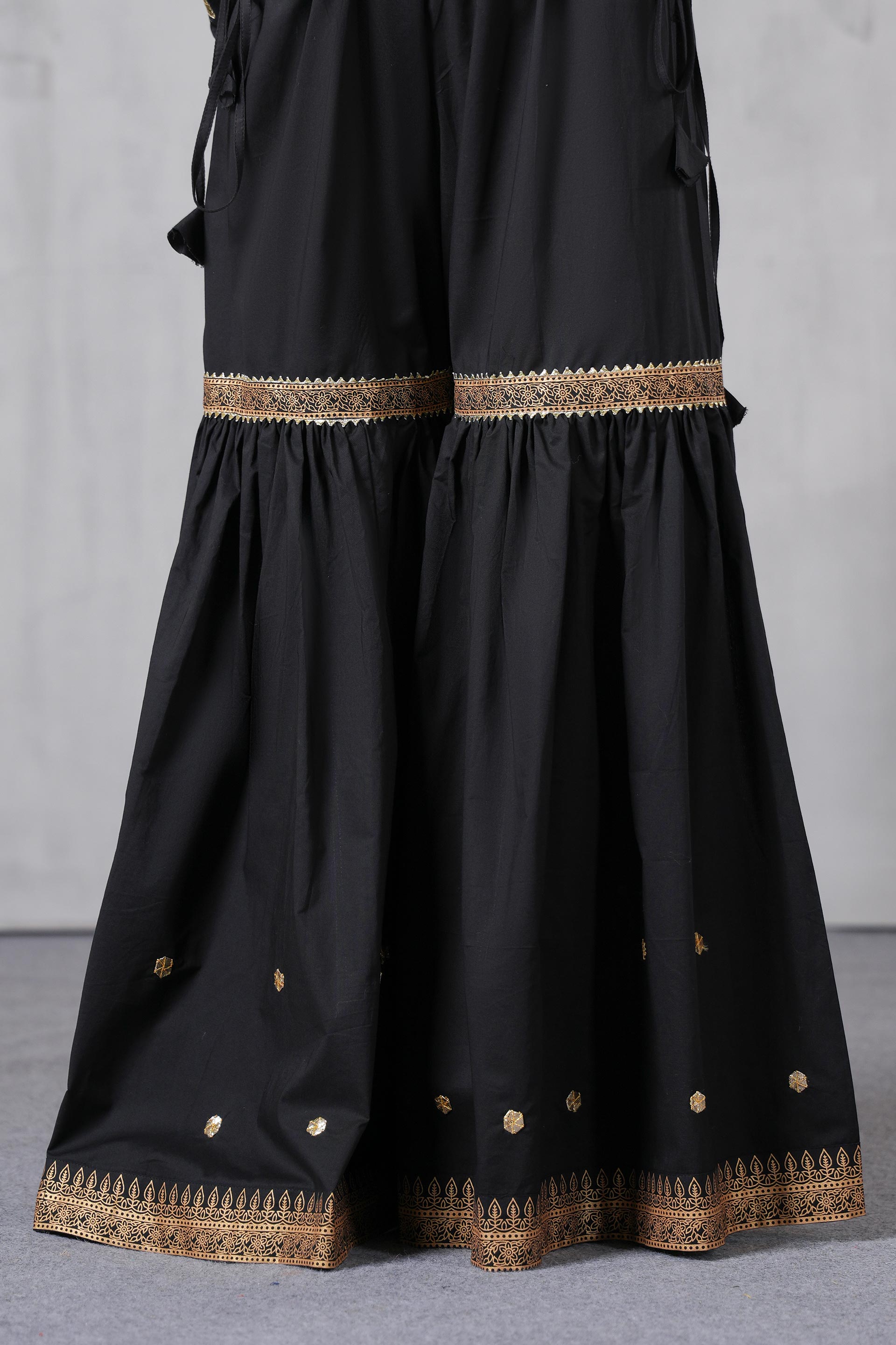 Experience elegance with the Gharara in Black, crafted from premium Cambric. This 1 Piece is perfectly designed for any occasion.