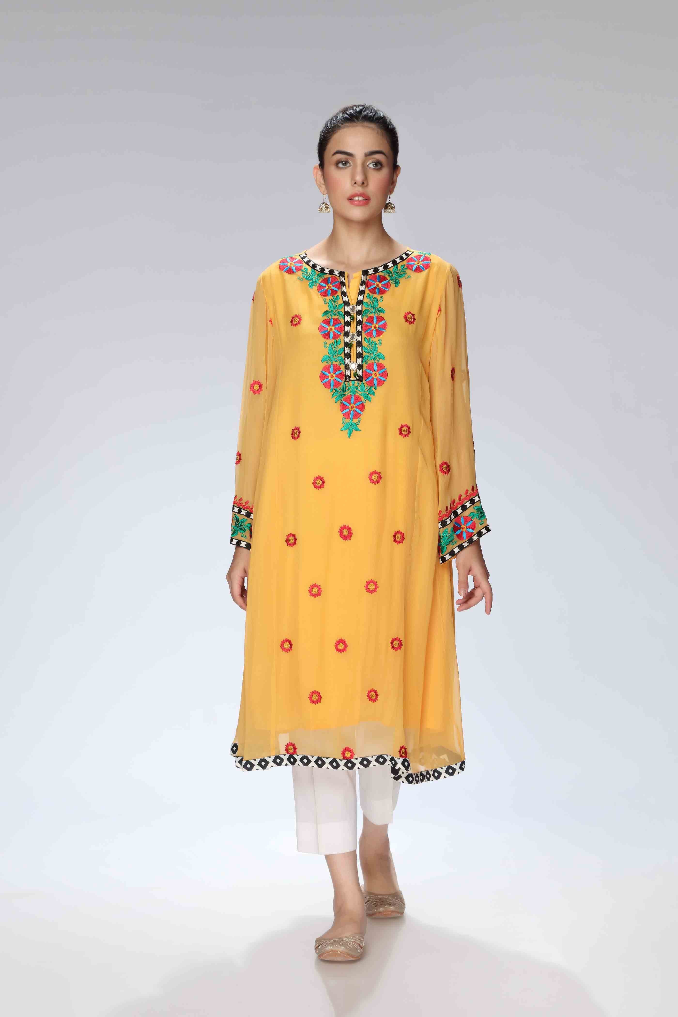 Experience elegance with the Frock in Yellow, crafted from premium Pak Chiffon. This Design is perfectly designed for any occasion.