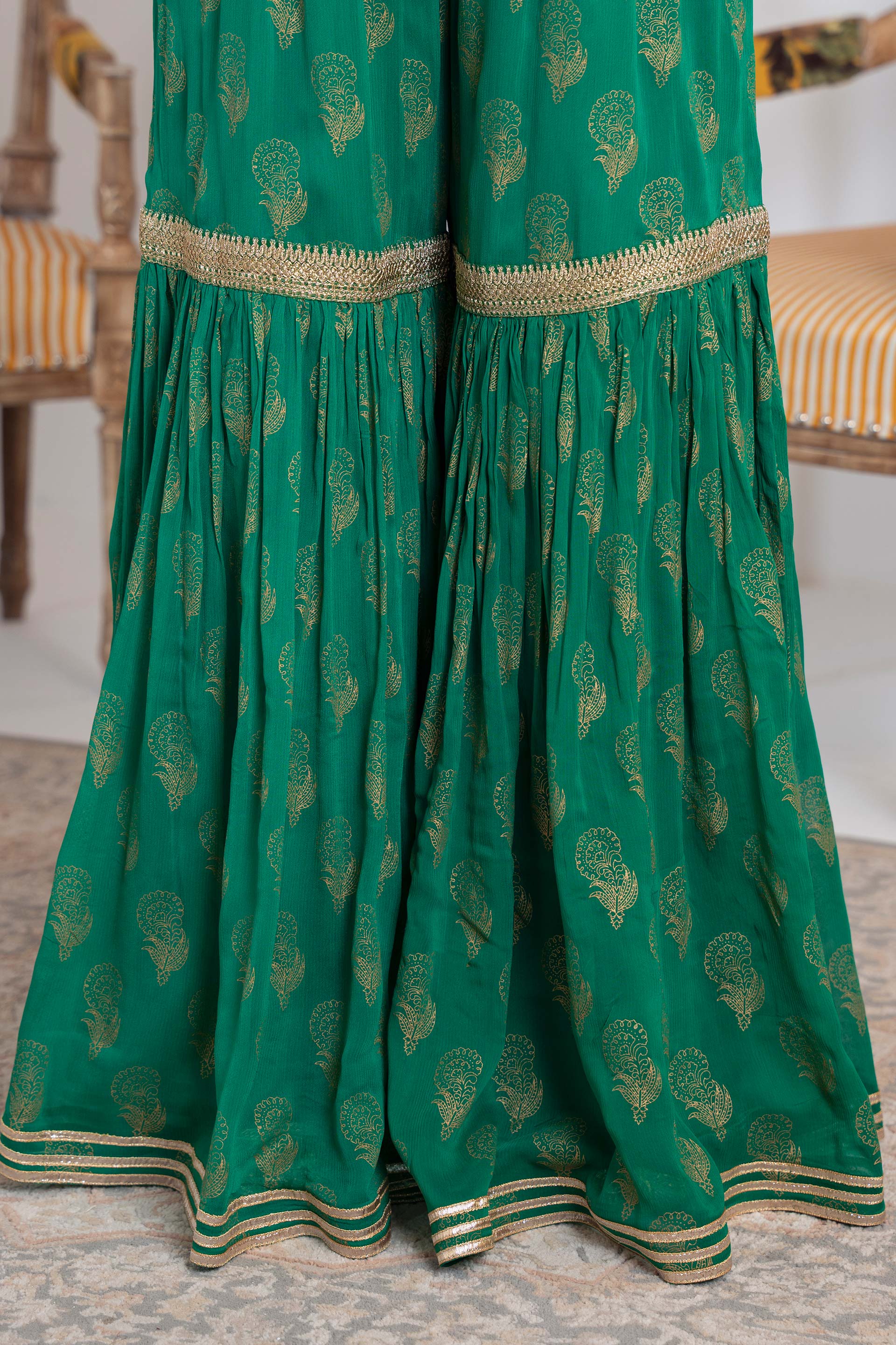 Experience elegance with the Gharara in Dark Green, crafted from premium Chiffon. This 1 Piece is perfectly designed for any occasion.