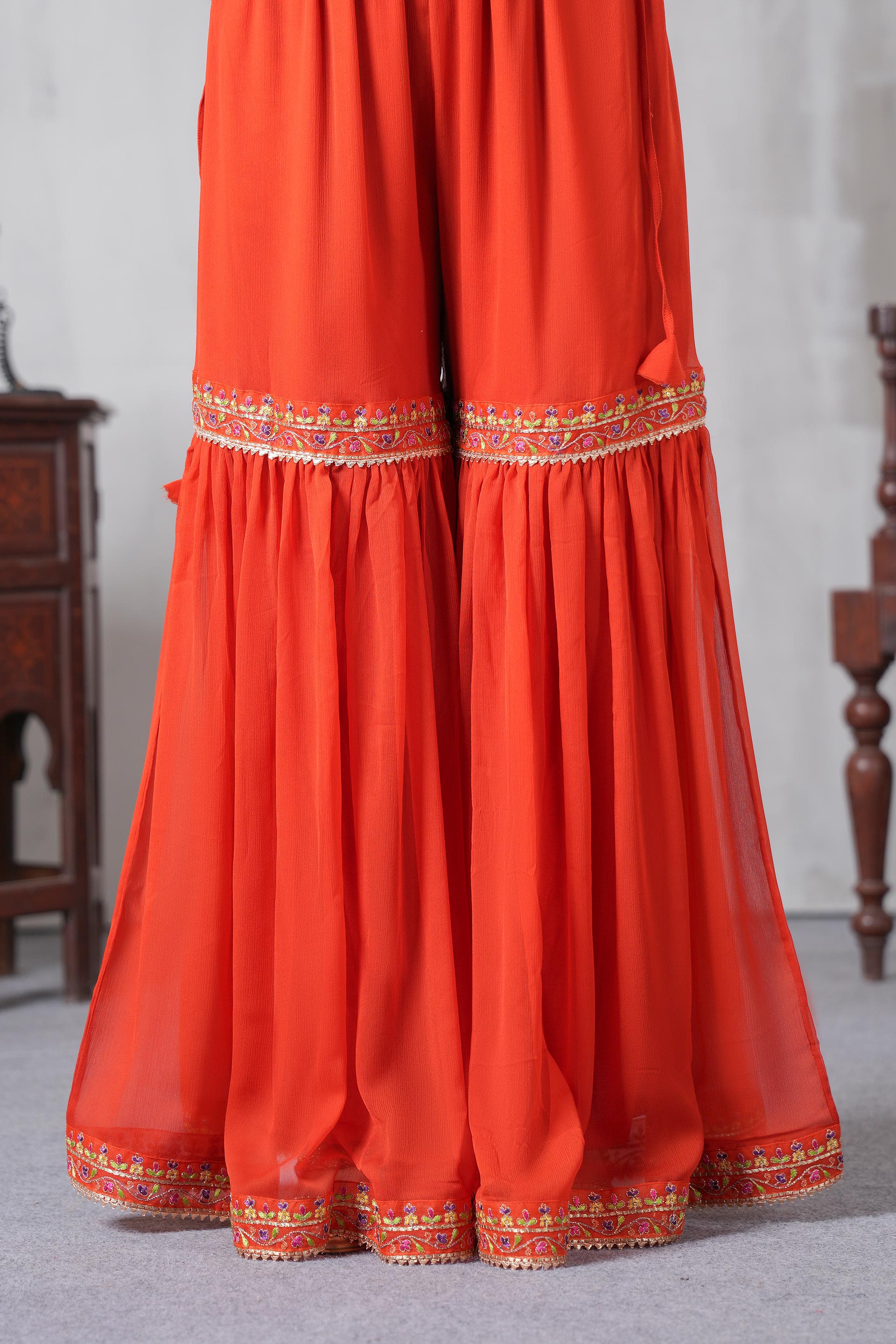 Experience elegance with the Gharara in Orange, crafted from premium Chiffon. This 1 Piece is perfectly designed for any occasion.