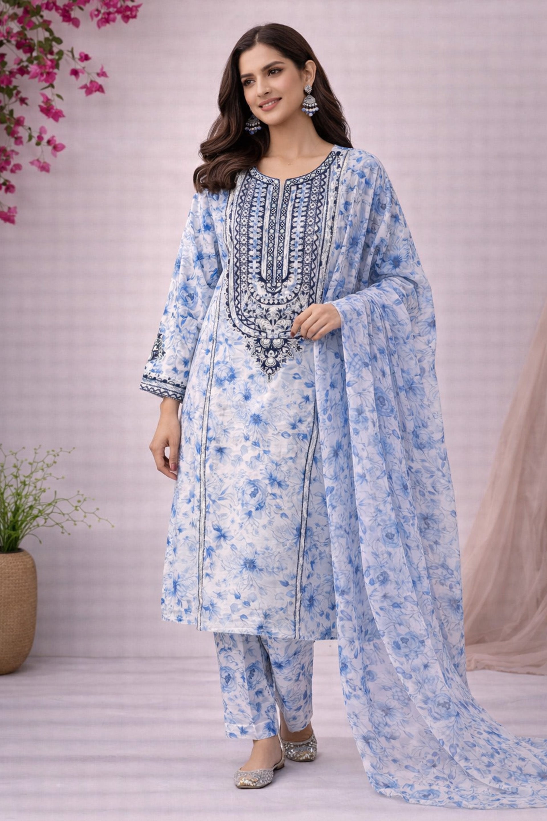 Experience elegance with the Suit in Multi, crafted from premium Lawn. This 3 Piece Suit is perfectly designed for any occasion.